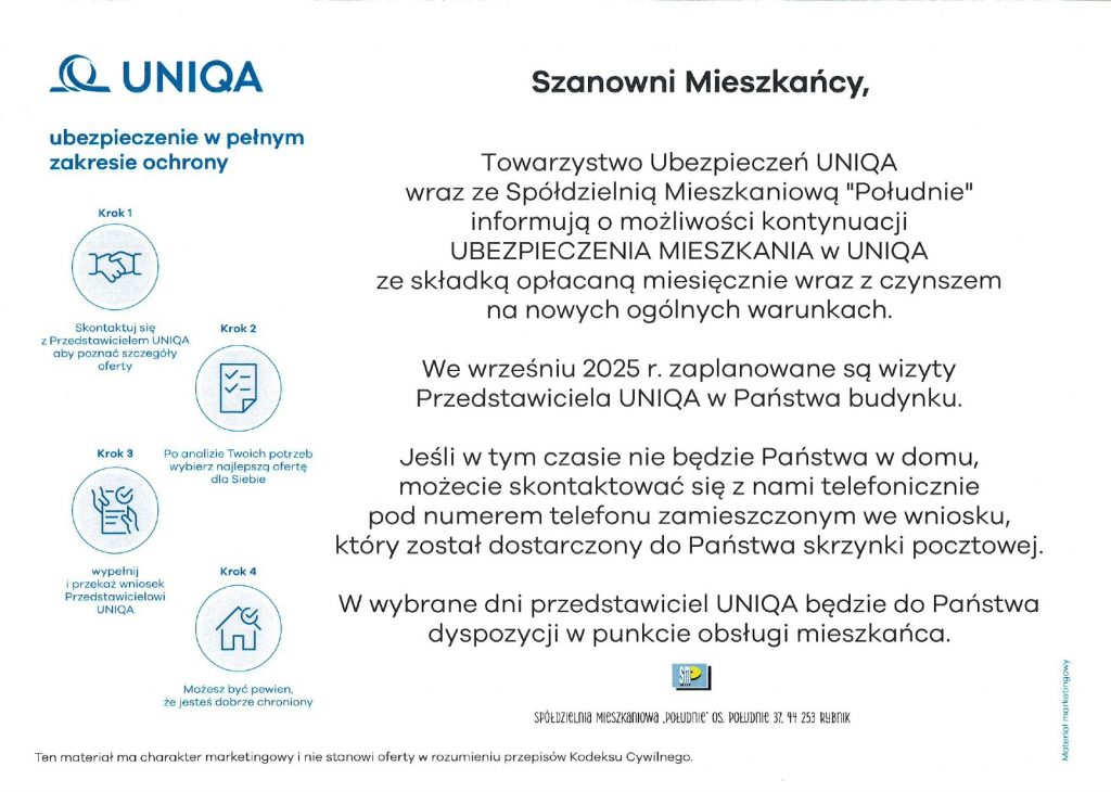 DYŻURY KONSULTANTA TOWARZYSTWA UBEZPIECZEŃ UNIQA - aktualizacja 07.10.2025r. 7 października 2025 w kategorii Z życia spółdzielni PAŹDZIERNIK PIĄTKI 16:00 – 19:00 SOBOTY 10:00 – 13:00